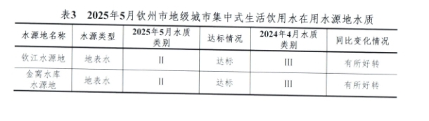 2025年5月钦州市城市集中式生活饮用水水源水质状况报告