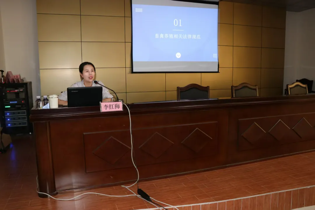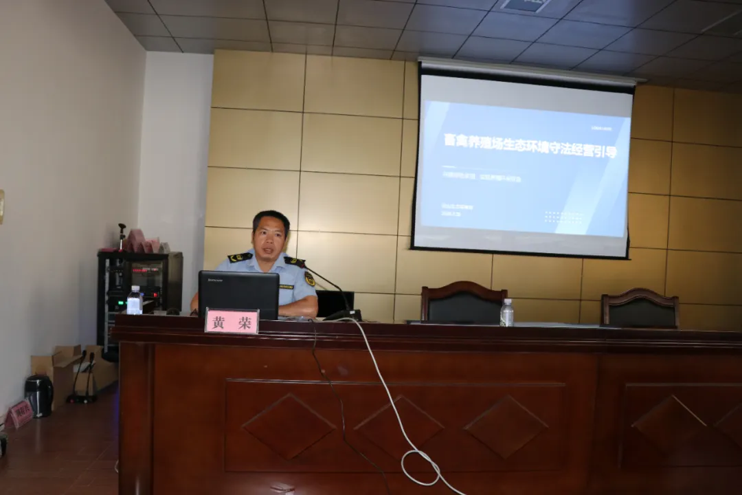 培训会上,灵山县生态环境保护综合行政执法大队大队长黄荣详细解读了《中华人民共和国环境保护法》《畜禽规模养殖污染防治条例》《广西壮族自治区水污染防治条例》等法律法规中关于畜禽养殖污染的禁止性规定和处罚标准,明确了执法检查中需重点核实的污染防治设施运行记录、粪污去向等关键信息。同时,针对排查中可能遇到的“设施建设不规范”“粪污还田不科学”“畜禽废弃物的规范处理”等问题,现场讲解了识别方法和处理流程,为一线执法人员提供了实操性指导。