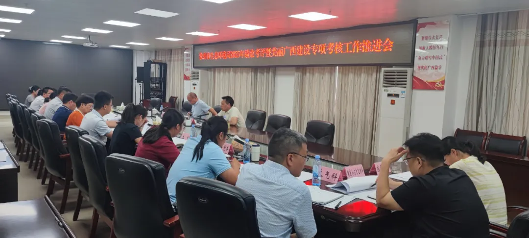 会议深入贯彻落实全区涉重金属污染防治暨“十四五”生态环境约束性指标工作推进会、全市绩效考评工作推进会精神,进一步统一思想、明确方向、压实责任,推动全年绩效目标任务高质量完成。会上,局办公室汇报了2025年绩效考核框架体系及全局绩效指标总体进展情况,土壤生态环境科围绕“农村环境整治”设区市指标进展及工作措施作汇报,综合科介绍“美丽广西建设”专项考核总体情况,执法支队汇报12345热线工单办理指标进展情况,各与会科室、单位还就本部门负责的绩效指标及“美丽广西建设”专项考核指标完成情况作汇报。