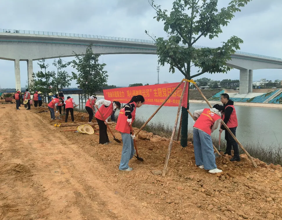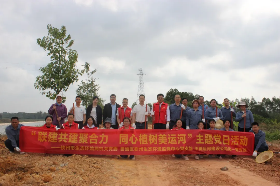 同饮一江水,共护一方绿。为深入贯彻习近平生态文明思想,牢固树立和践行“绿水青山就是金山银山”理念,3月16日,钦州市生态环境局机关党委联合自治区钦州生态环境监测中心党支部、平陆运河建设公司第一党支部,组织党员前往平陆运河航道10标段开展“联建共建聚合力 同心植树美运河”主题党日活动,以实际行动守护绿水青山。